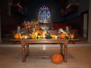 Harvest Sunday takes place on the Sunday before Thanksgiving. It is a festival service in which we celebrate and give thanks for the bountiful gifts of God. During the service we receive a special offering including gifts of canned foods to be given to an outreach program the church sponsors in Maine as well as Neighbor to Neighbor, a local food pantry.