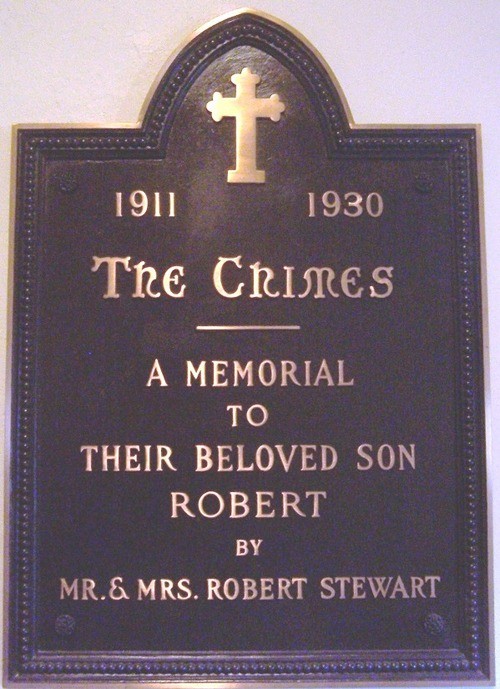 Our memorial chimes of twelve bells with keys, weights and inscriptions, are as follows: